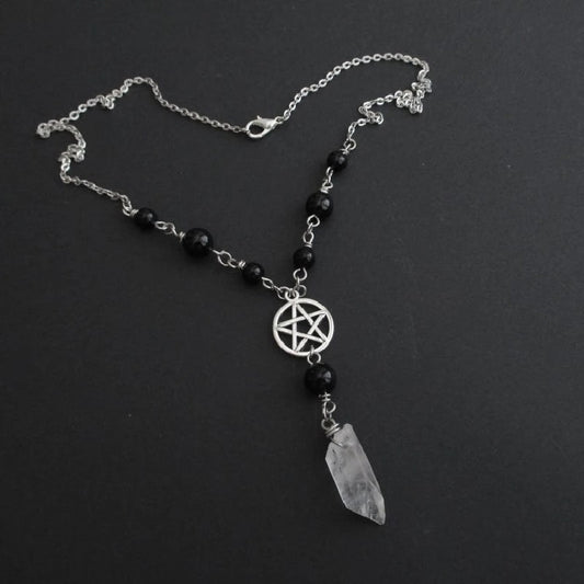Gothic Beaded Pentagram Crystal Necklace