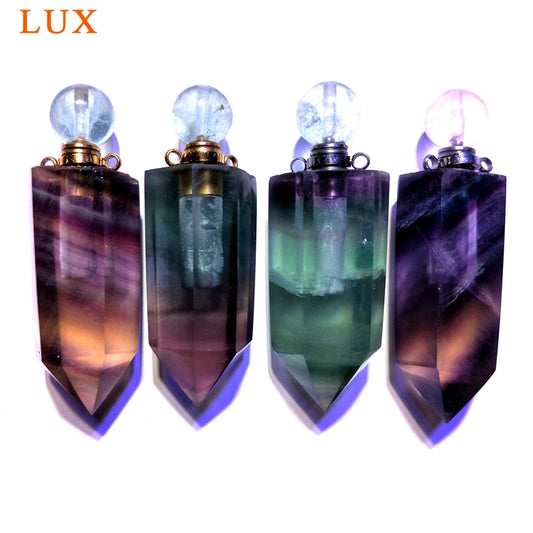 Natural Rainbow Fluorite Hexagon prism Perfume Bottle Pendant pointed Gems stone Chakra Crystal Quartz Pendant for necklace