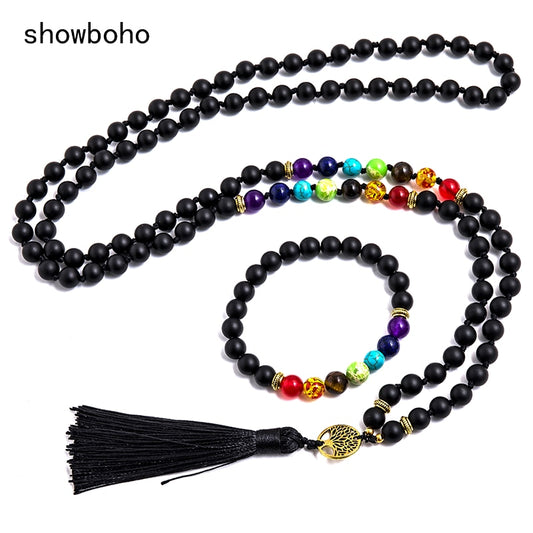 7 Chakra Beaded Knotted 108 Mala Necklace Meditation Sets