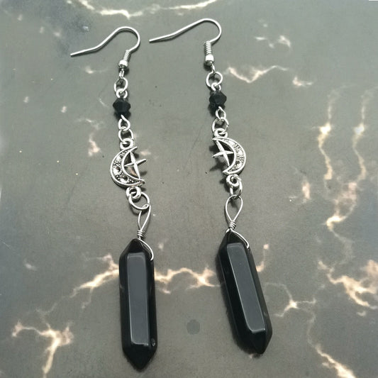 Witch Obsidian Crystal Crescent Earrings