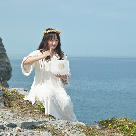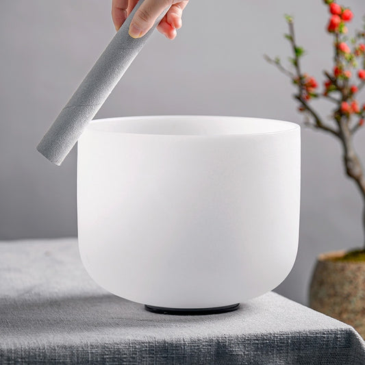 Life Flower Design 8 Inch C Note Chakra Frosted Quartz Crystal Singing Bowl