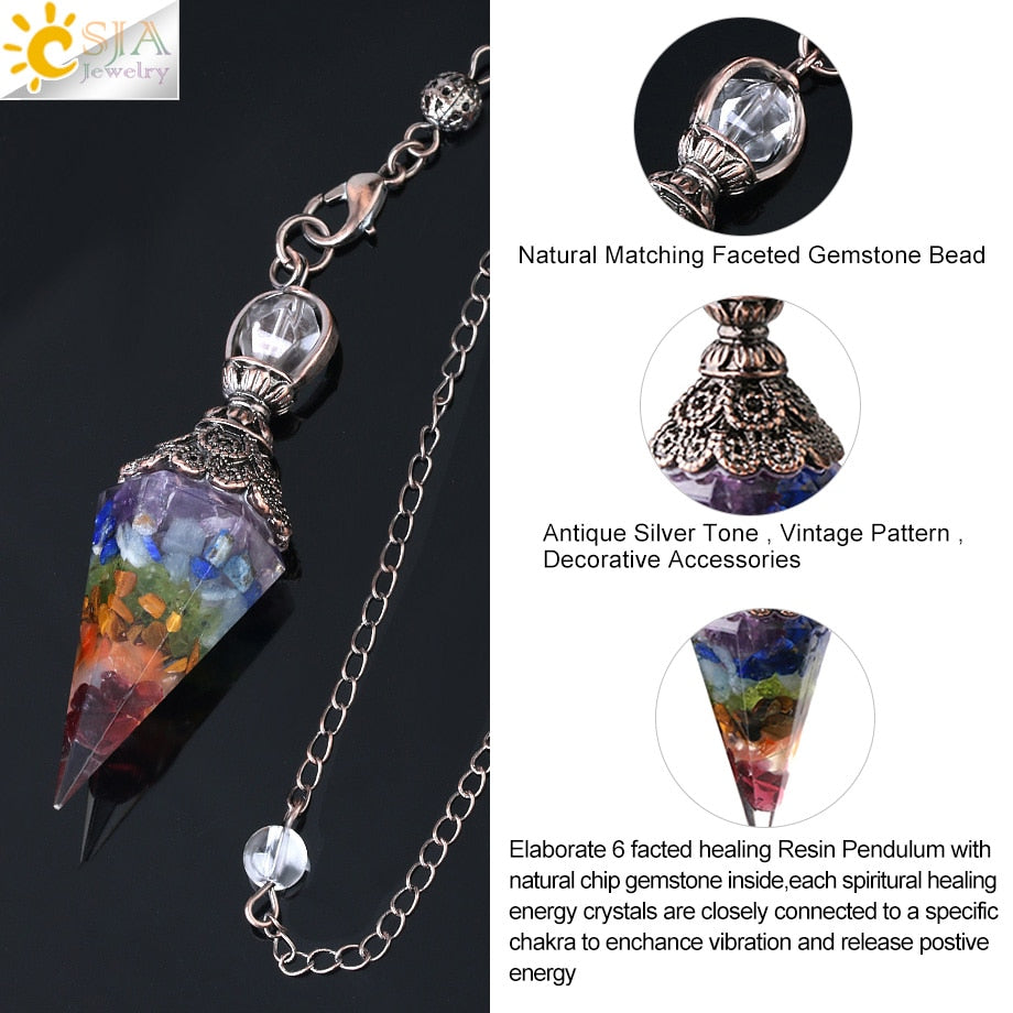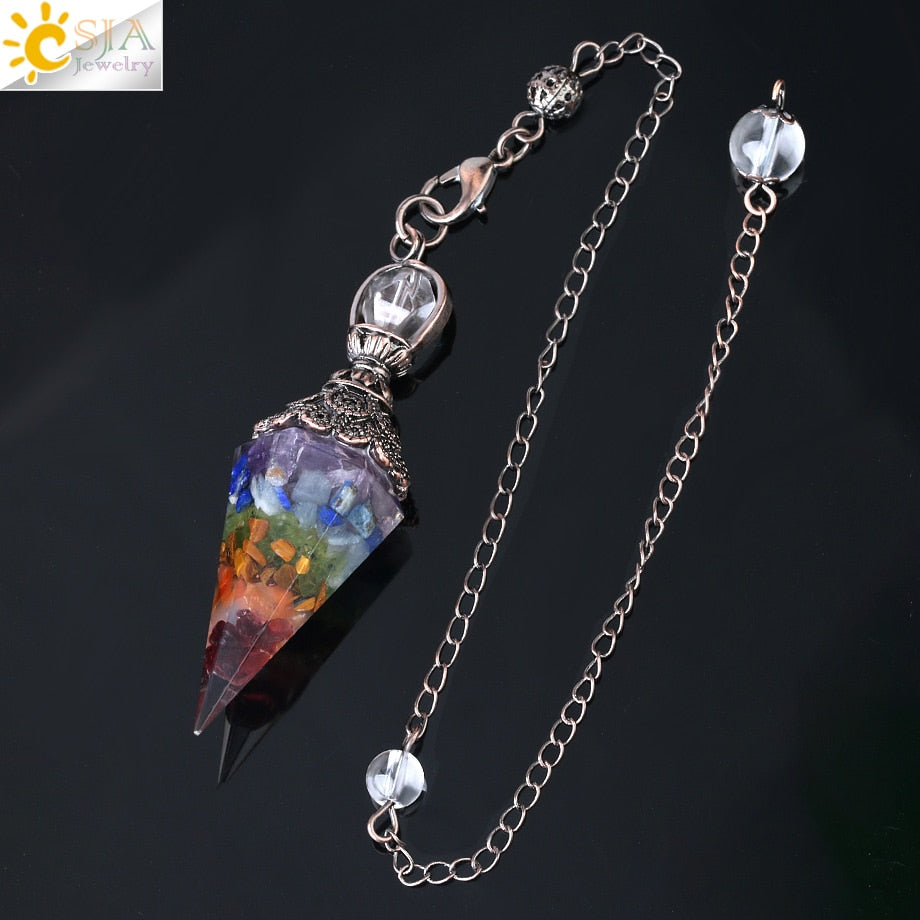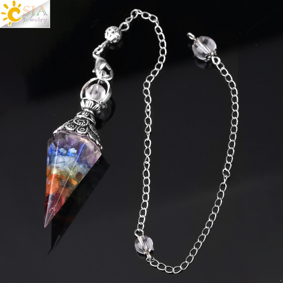 Pendulum 3: 7 Chakra Natural Stones , Quartz Pendulum , Divination Pendulum