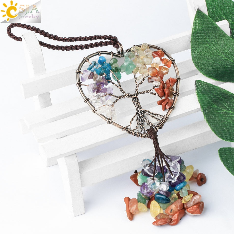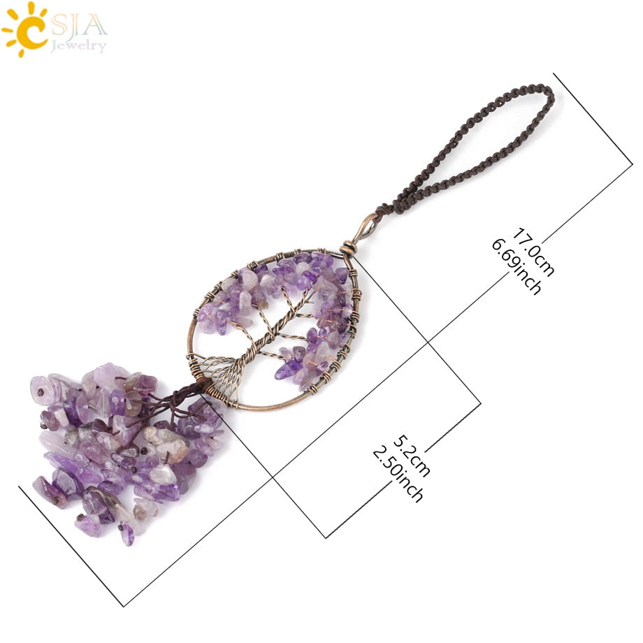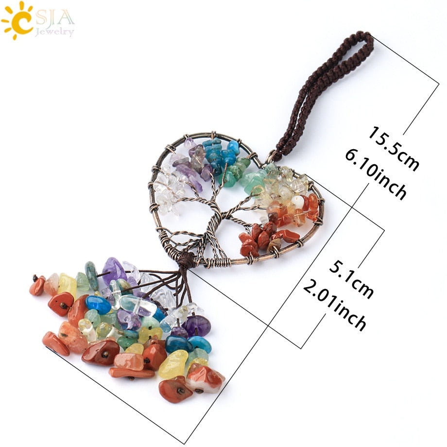 Product Name: 7 Chakra Quartz Tree of Life Braided Long Key Hanging Decor