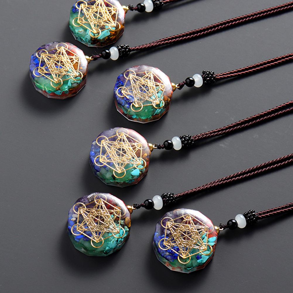 Natural Crystal Chakra Orgone Energy 7 Chakra Stones Pendant Energizing Necklace Absorbs Negative Energy Bring Lucky Necklace