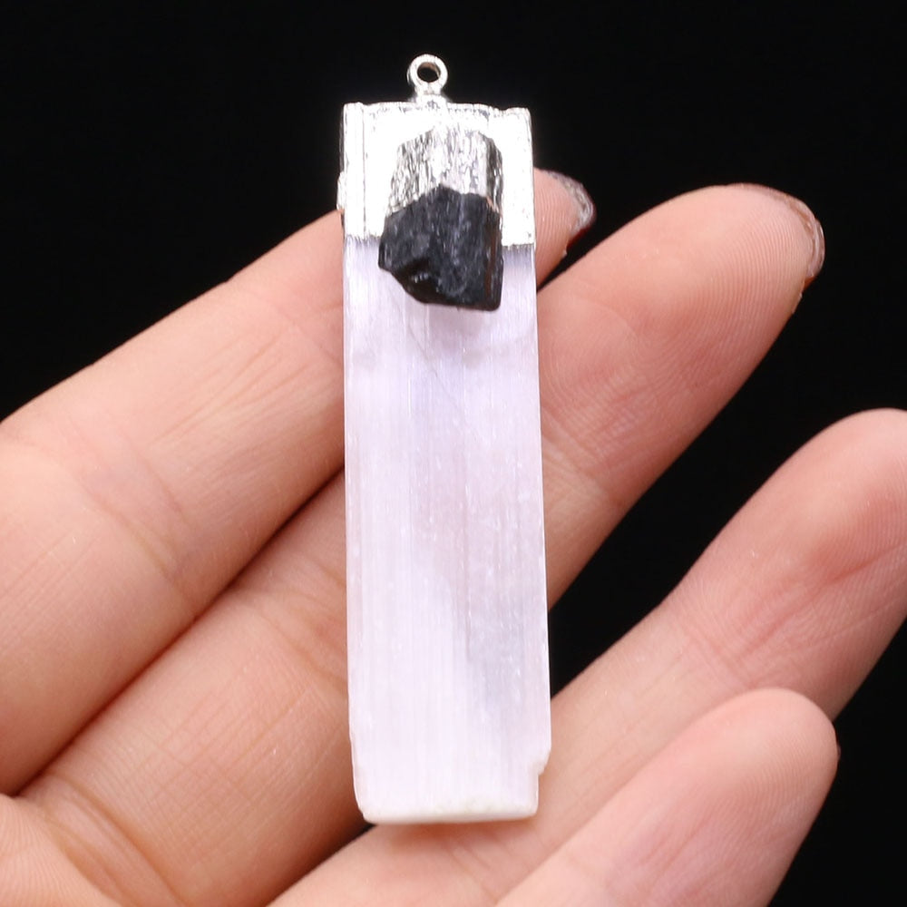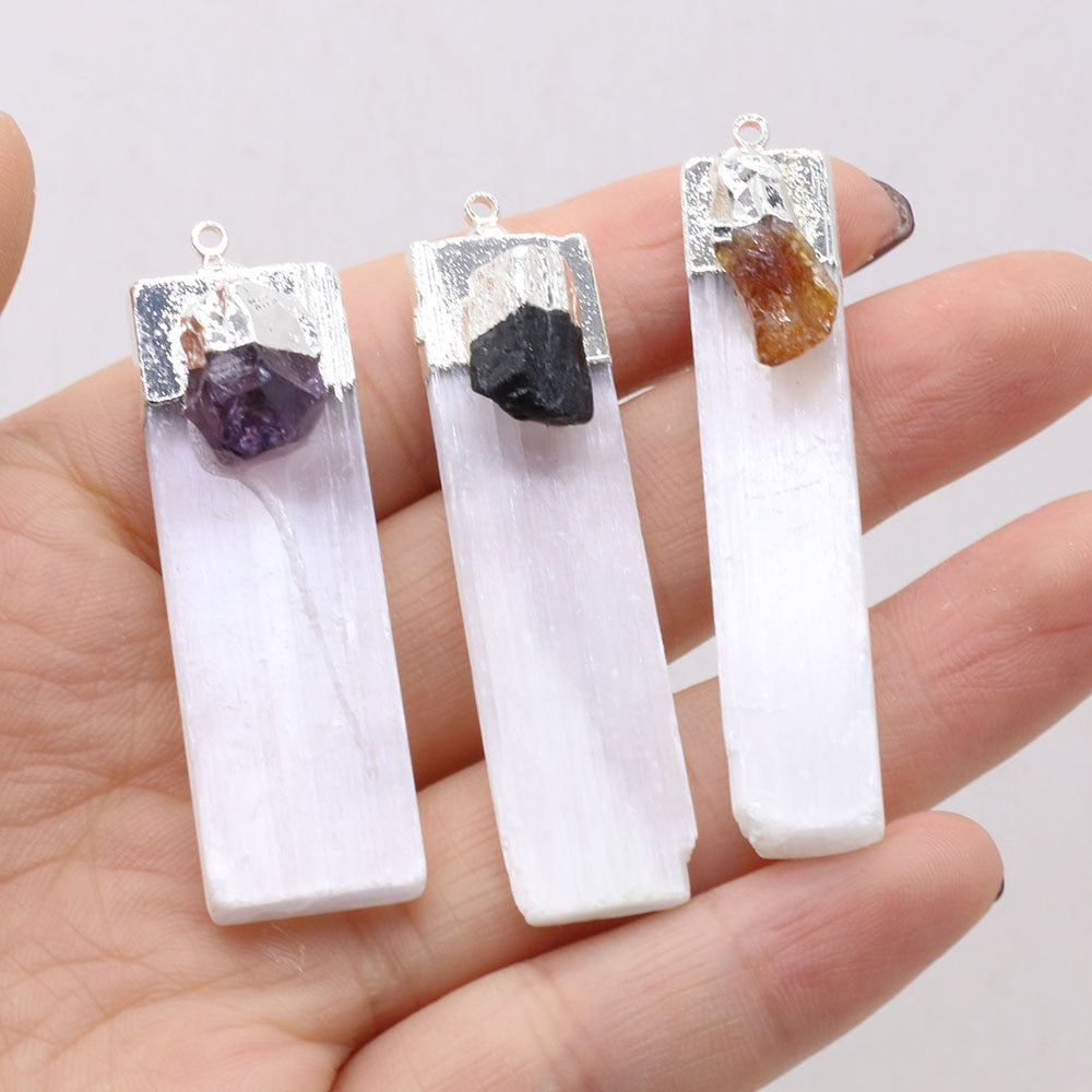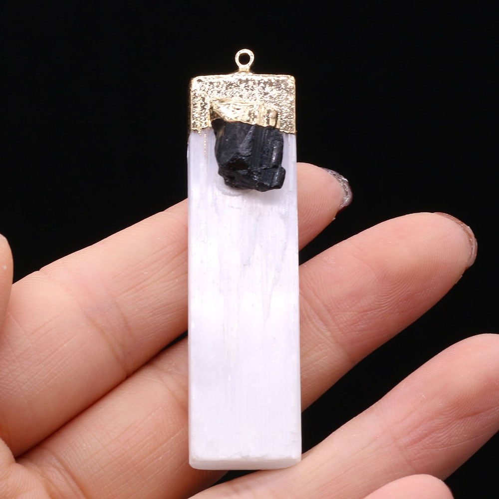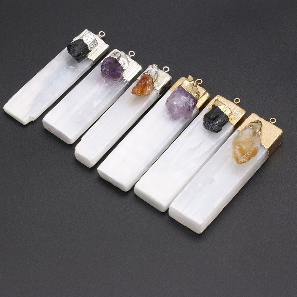 Natural Selenite Plaster Pendant Black Tourmaline Rock Mineral Reiki Healing Energy Stone Amethyst Charms DIY Necklace Making