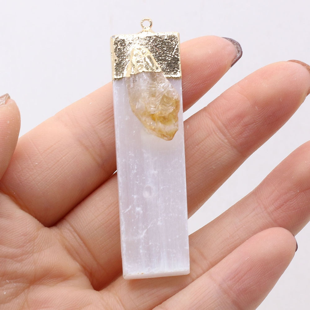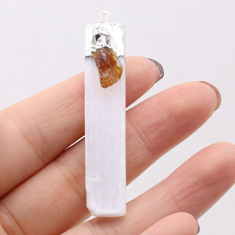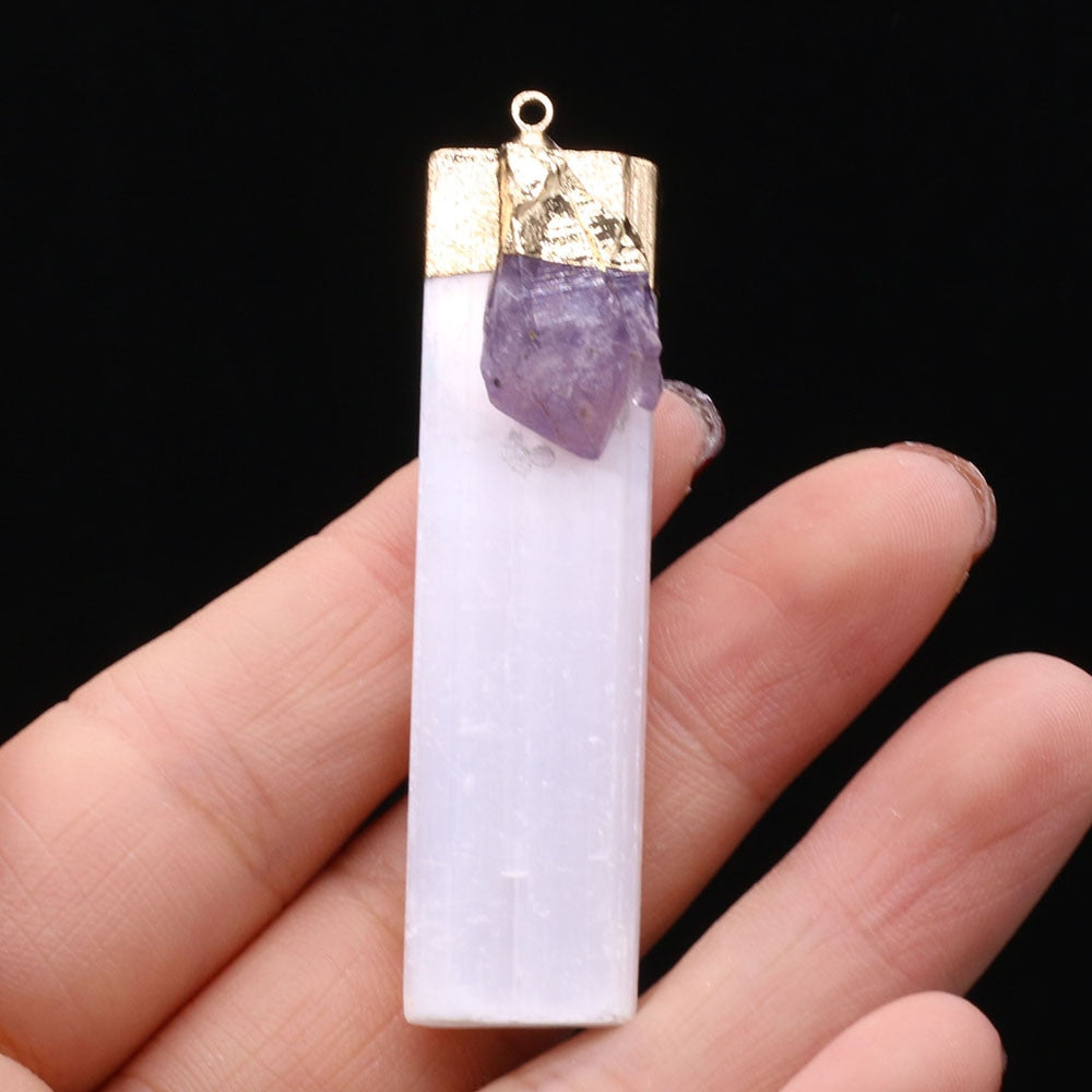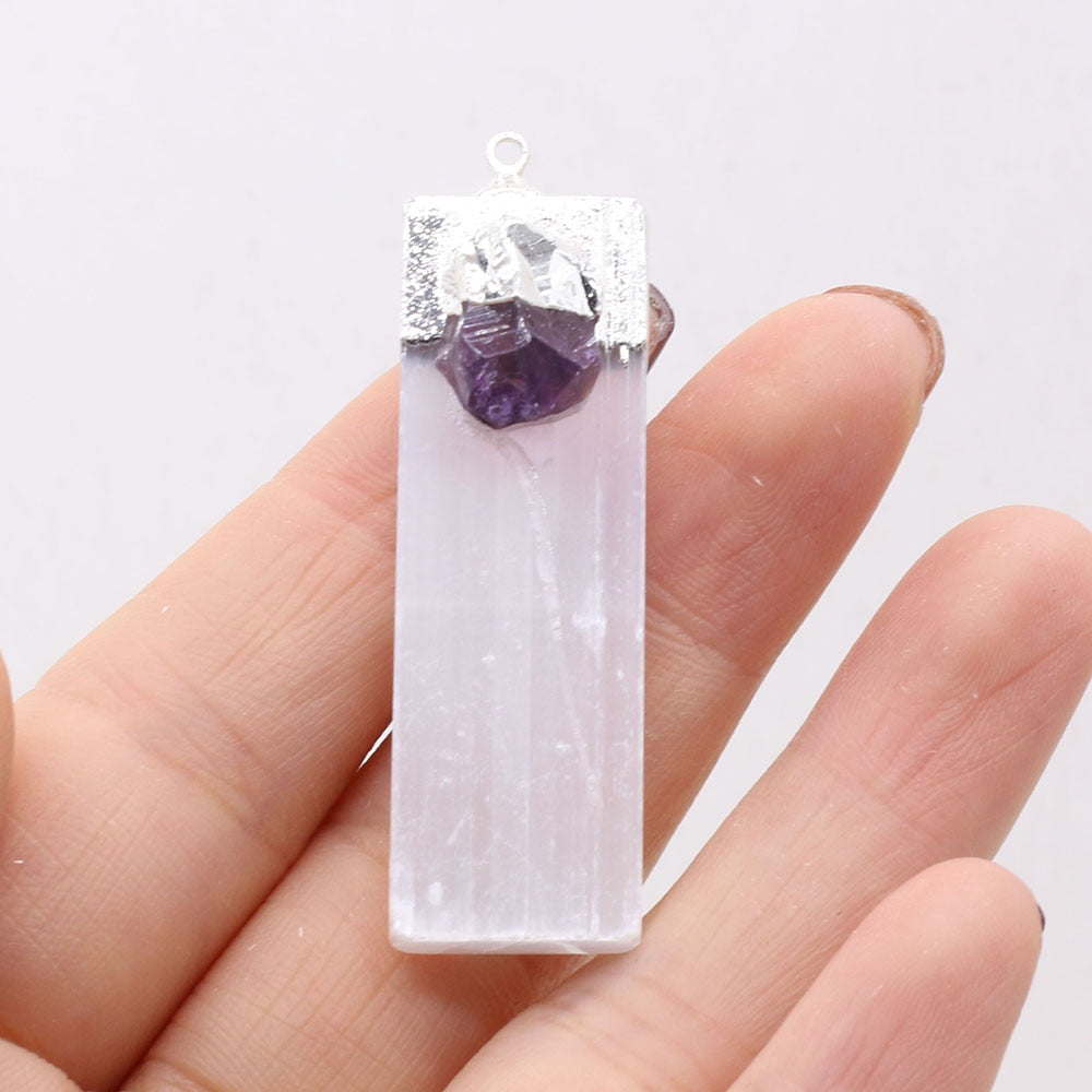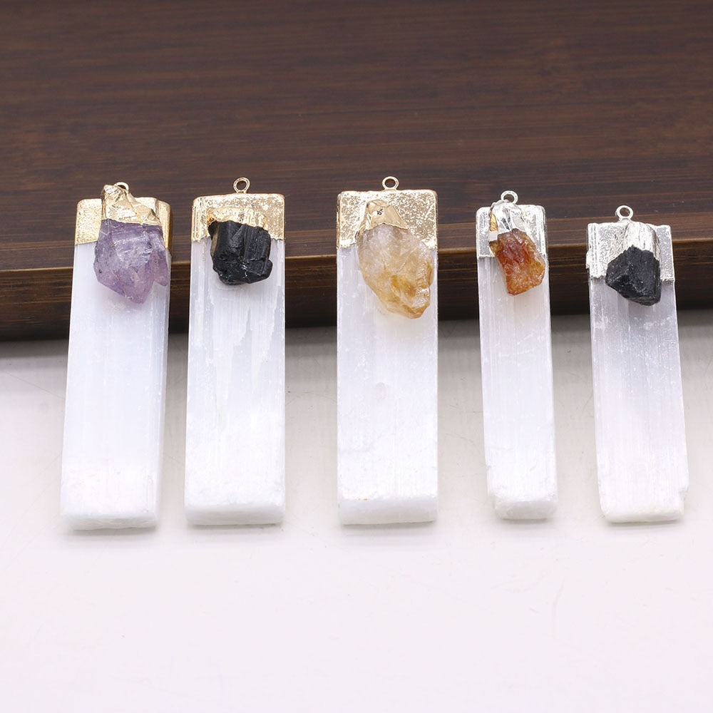 Natural Selenite Plaster Pendant Black Tourmaline Rock Mineral Reiki Healing Energy Stone Amethyst Charms DIY Necklace Making