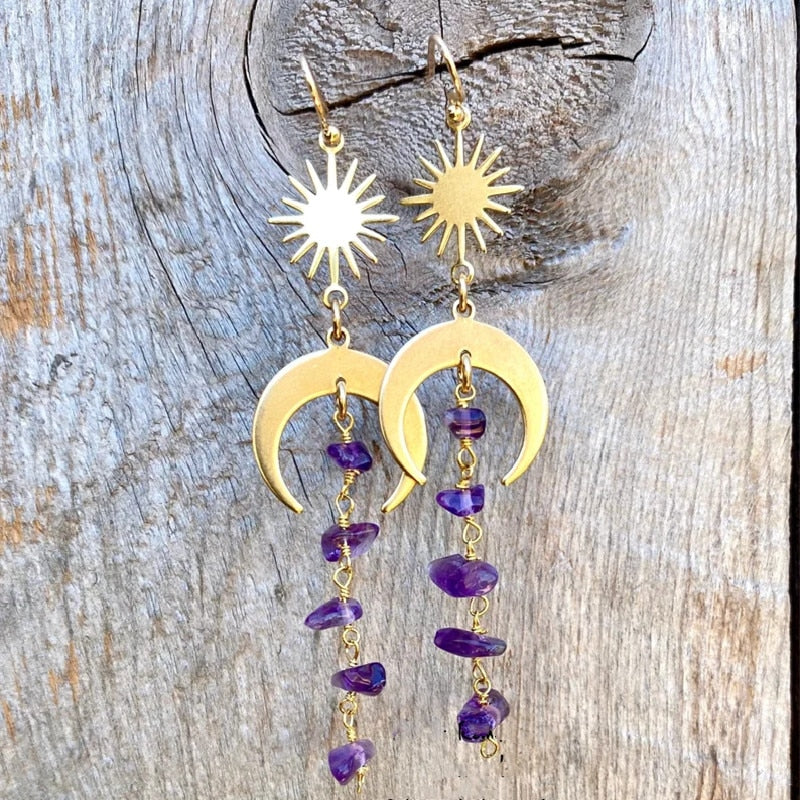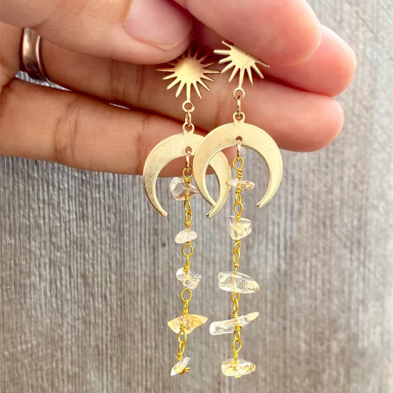 New BOHO Crystal Earrings Birthstone Earrings Rose Quartz Moonstone Peridot Raw Crystal Black Tourmaline Women Gift Wholesale