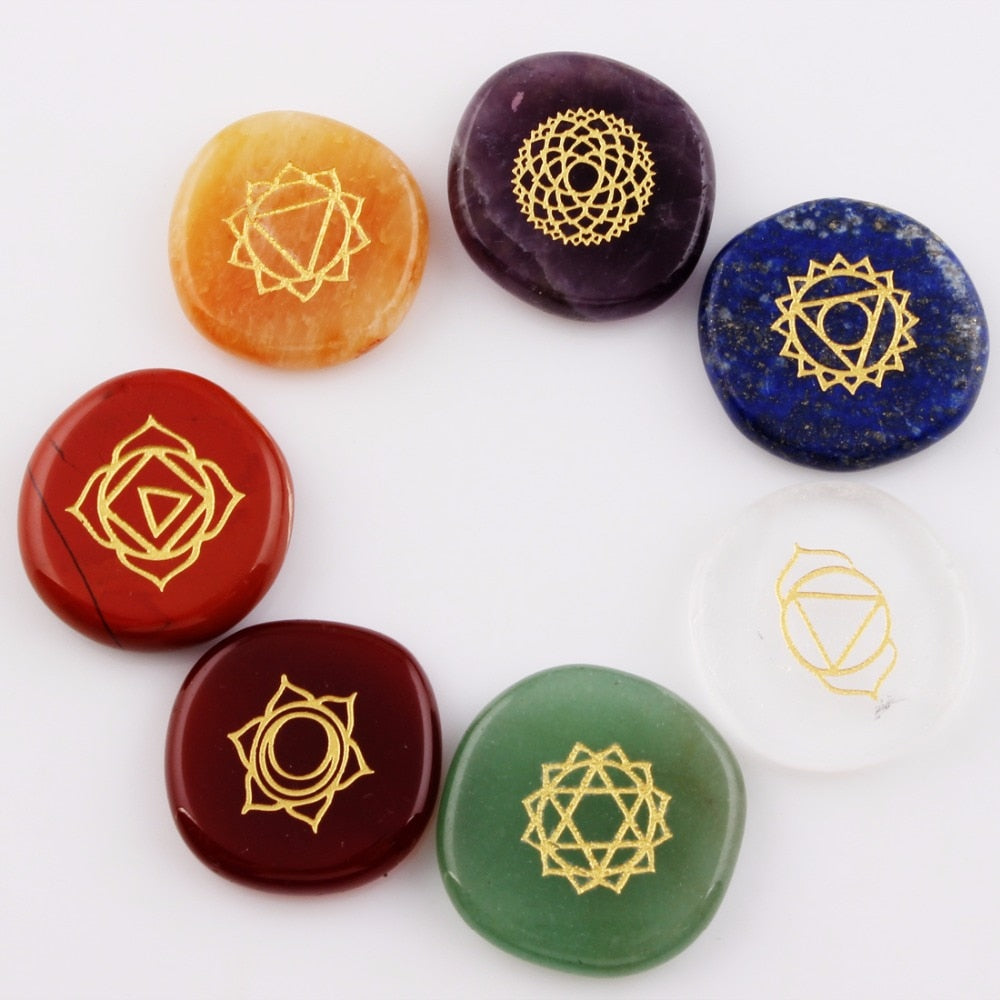 Engraved Pocket Palm Chakra Stones